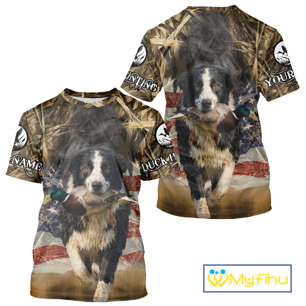 Border Collies Duck Hunting USA Flag Customized Name All Over Printed Shirts, Hunting Gifts NBT153