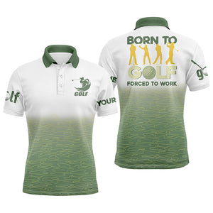 Born to golf forced to work Mens golf polo shirts Green pattern golf shirts custom golf polos for men NQS4734