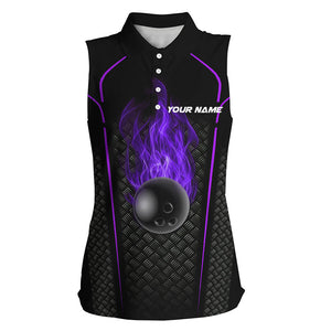 Bowling ball fire custom sleeveless polo Bowling Jersey 3D Bowling Team Shirt For women| Purple NQS7053