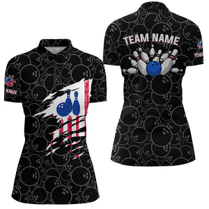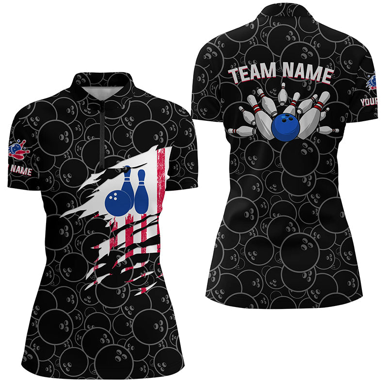 Bowling Quarter-Zip Shirt Women Bowling Jerseys Personalized American flag black Bowling Team Shirts NQS5491
