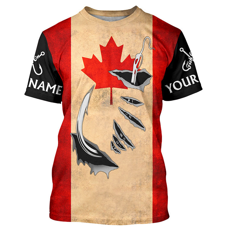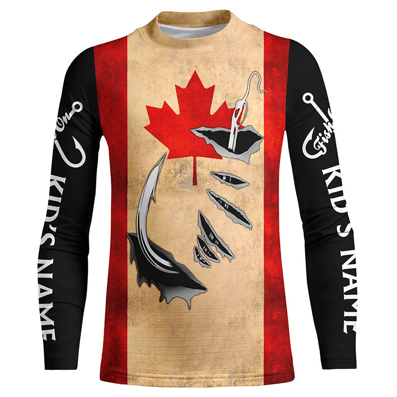 Canadian Fishing 3D Fish Hook patriotic fish on UV protection custom name long sleeve fishing apparel NQS5406