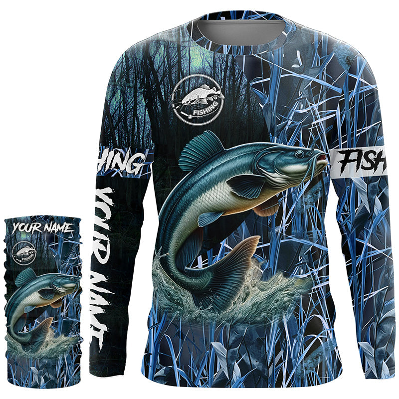 Catfish fishing blue camouflage fishing clothing Custom UV protection performance fishing shirt NQS2614