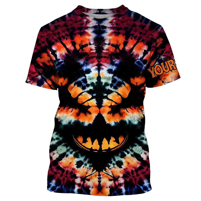 Custom Tie Dye Halloween Shirts Pumpkin 3D All Over Printed Mens Womens Tie Dye Halloween Shirts FSD3415