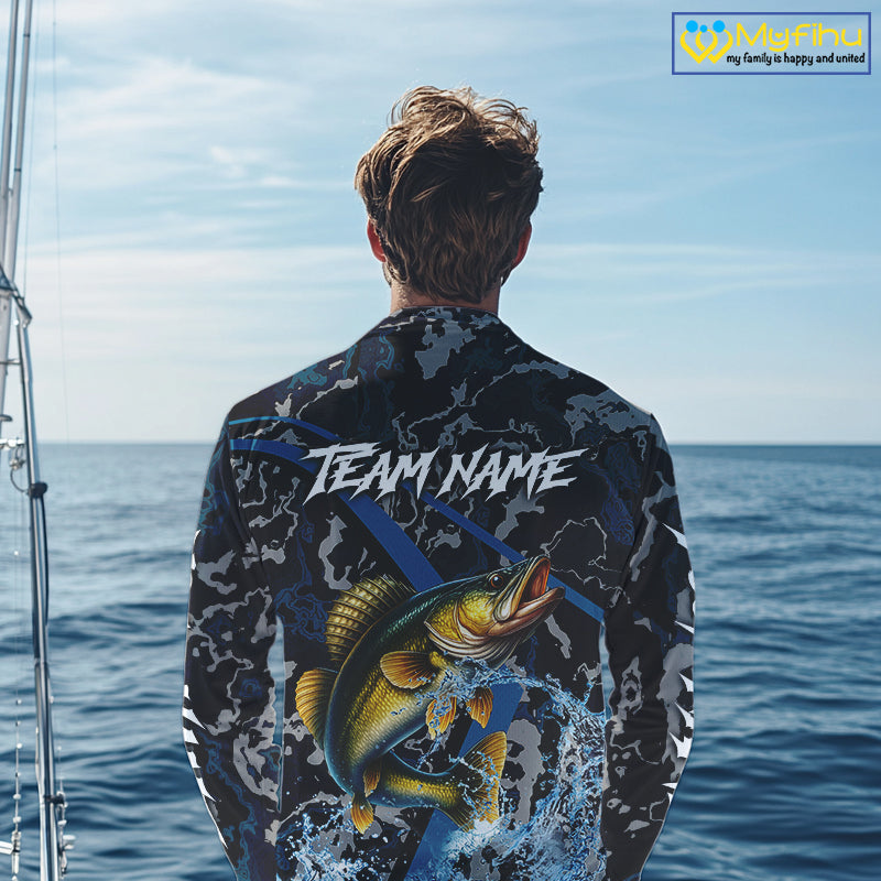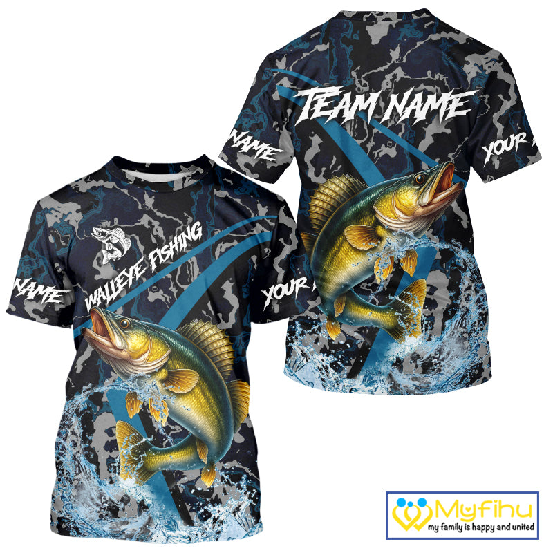 Custom Walleye Fishing Camo Long Sleeve Fishing Shirts, Personalized Walleye Fishing Team Jerseys NQS9938