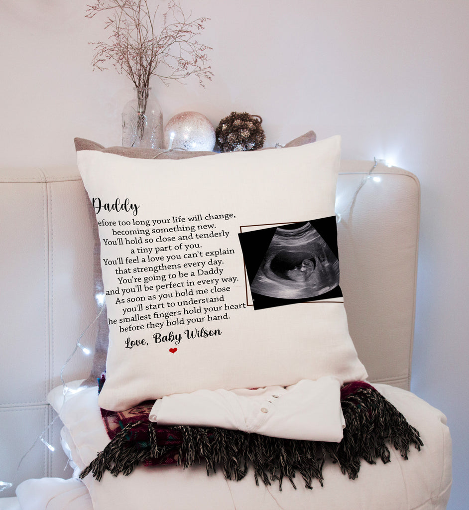 Dad to Be Personalized Pillow (Insert Included) Custom Sonogram Fathers Day Gift New Daddy 1-side Print NPL133