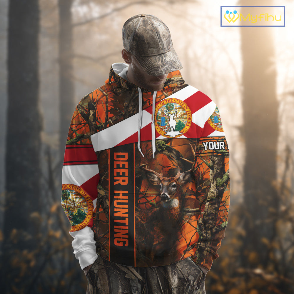 Deer Hunting Shirt With Orange Camouflage, Florida Flag, Custom Name Shirt, Gifts For Hunters NHT04