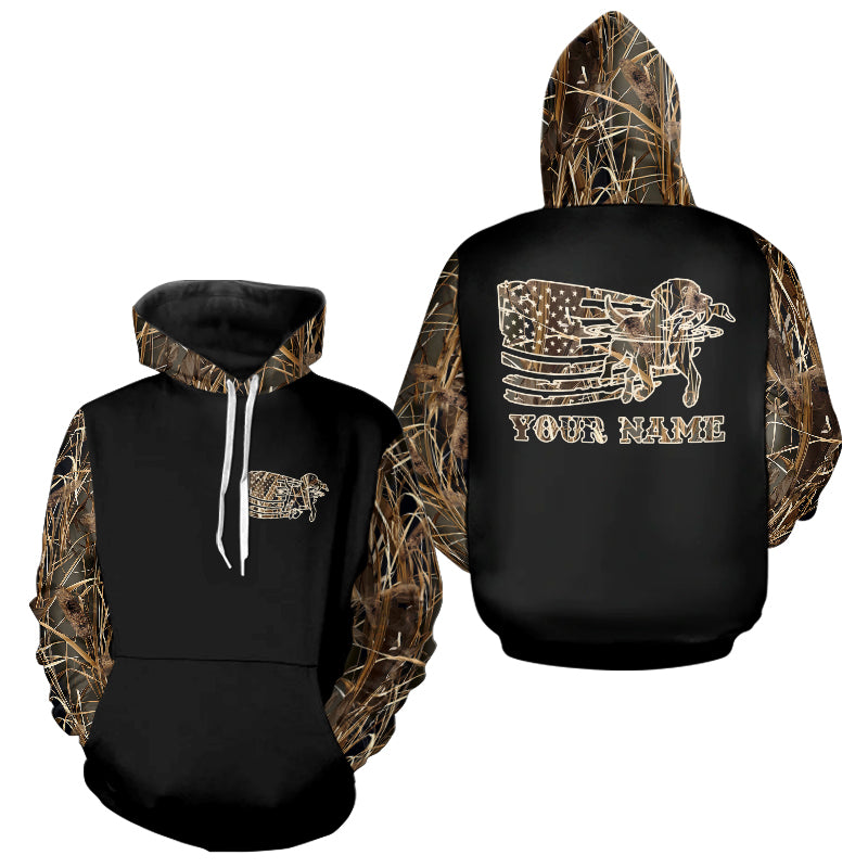 Designed for passionate hunters and dog lovers, this custom hunting hoodie combines rugged style with personal customization. Featuring a lifelike image of a hunting dog in action, retrieving a pheasant, duck, grouse, set against a camouflage and black color scheme, this hoodie is a must-have for any hunting enthusiast.