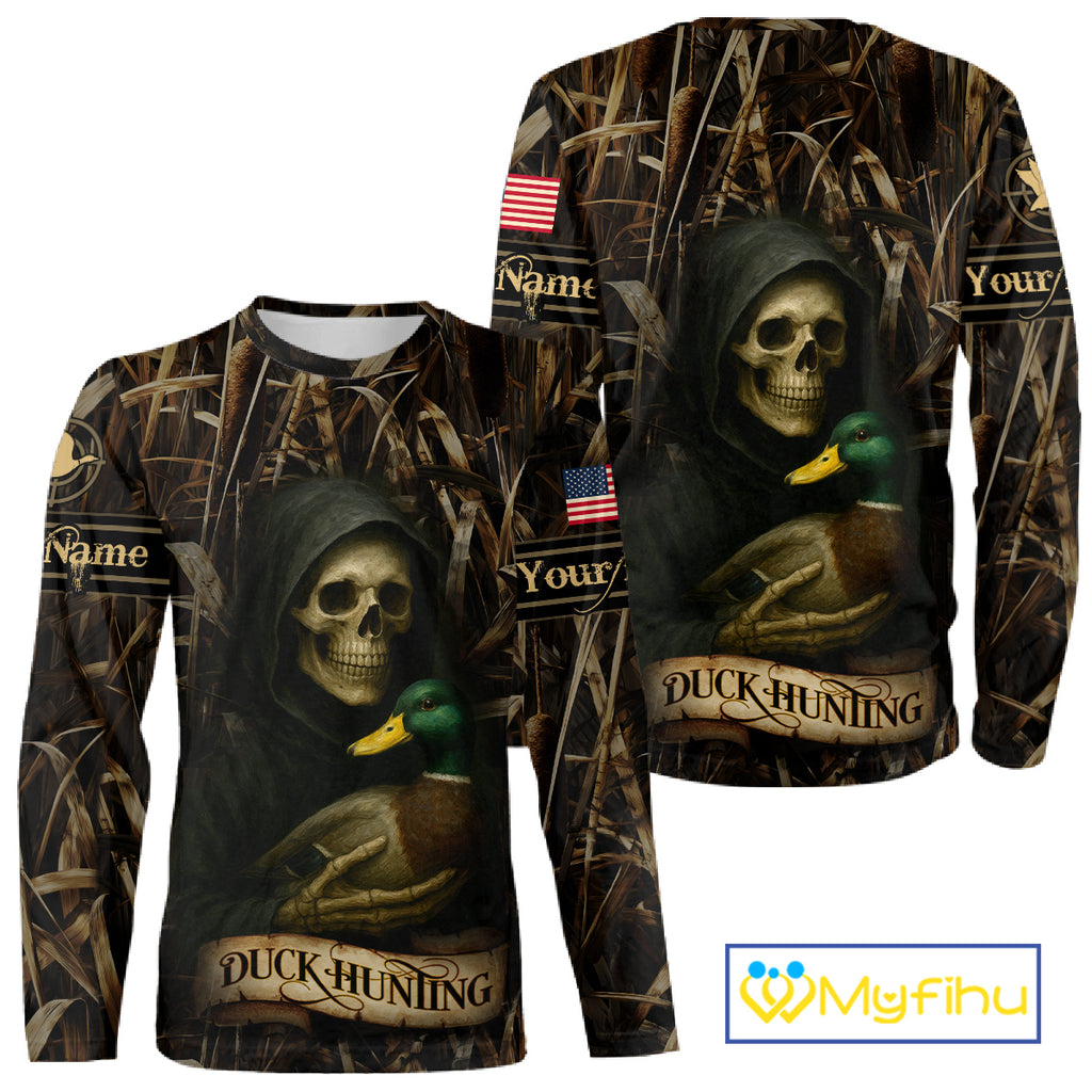 Duck Hunting Camouflage US Flag Custom 3D All Over Printed Shirts Personalized Hunting gift NHT106