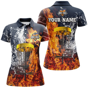 Fire and water disc golf basket custom name Womens disc golf polo shirt, personalized disc golf gifts NQS4606