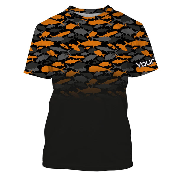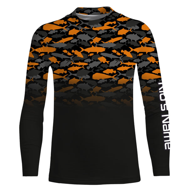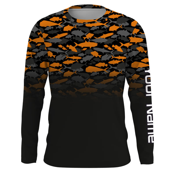 Fishing black orange camouflage UV long sleeve, hooded camo shirts Custom fishing apparel NQS2514