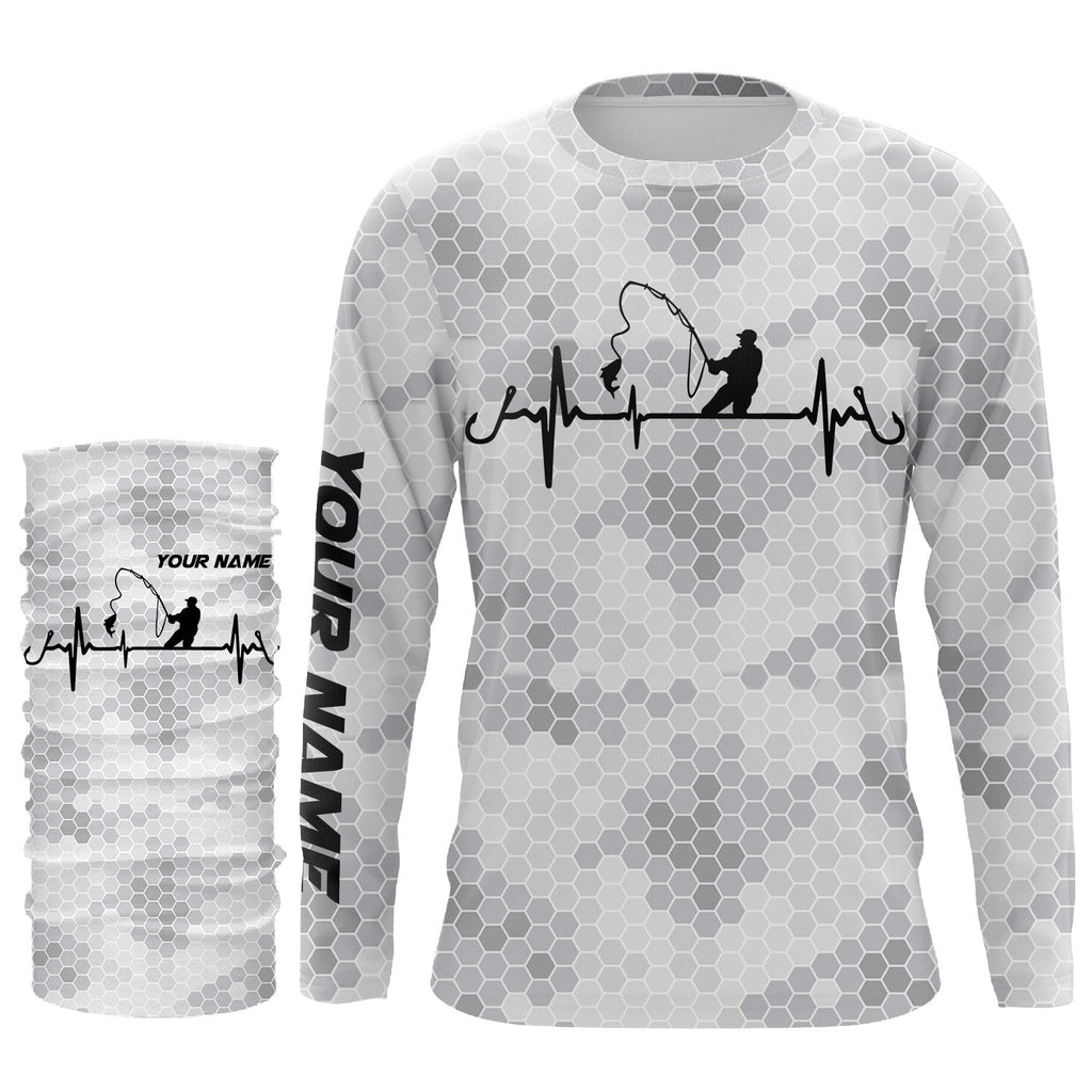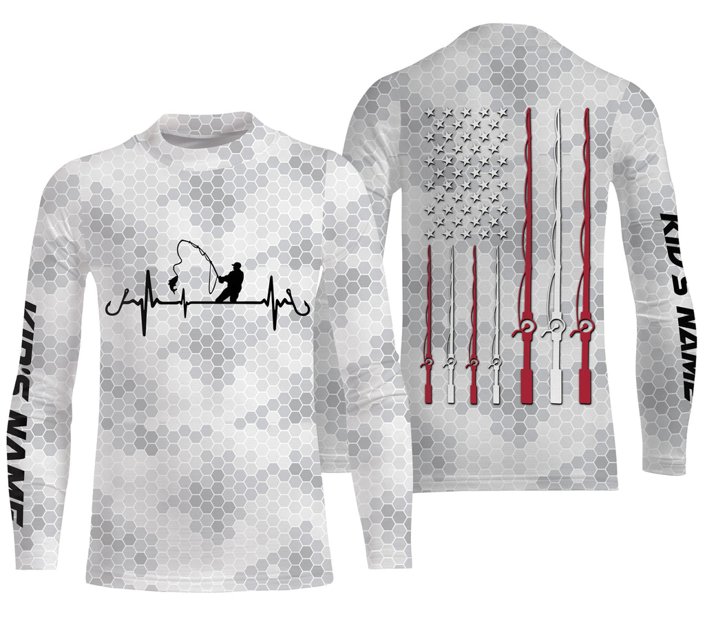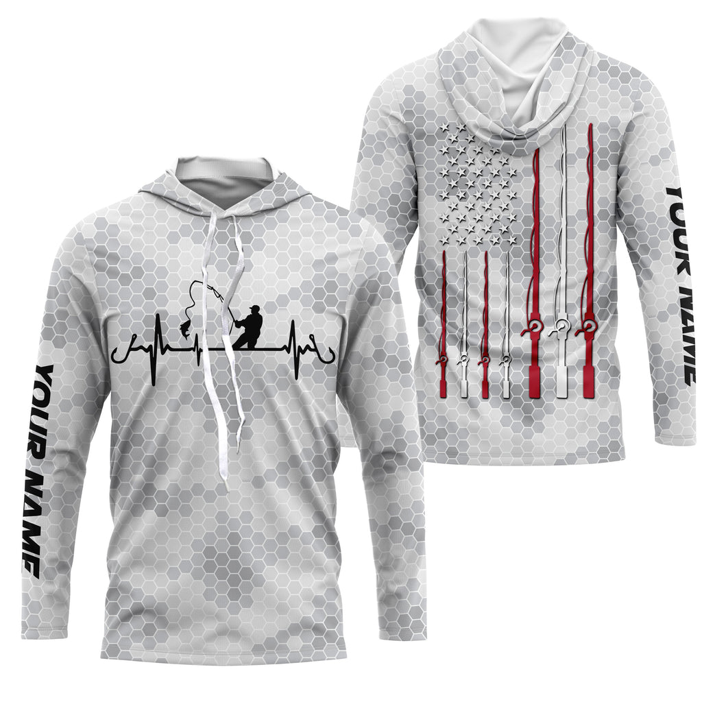 Fishing Heartbeat American flag fishing rod custom name Long Sleeve performance Fishing Shirts jerseys NQS4533