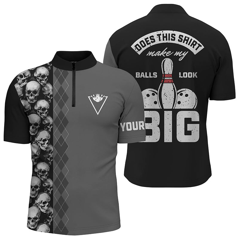 Funny black skull Bowling Quarter Zip shirt for men Custom name Does this shirt make my balls look big NQS4666