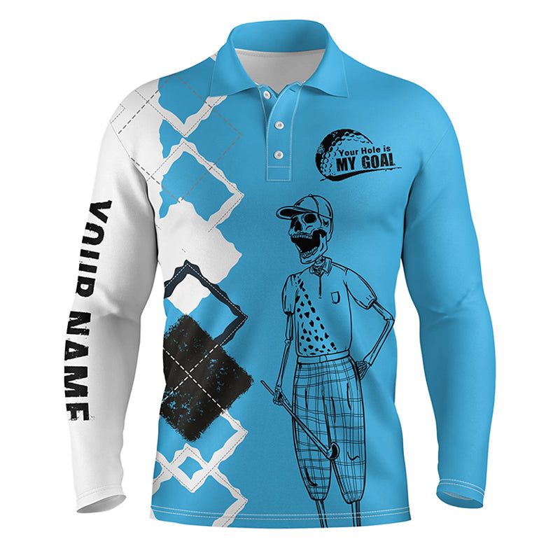 Funny golf shirts skull custom Mens golf polos shirts your hole is my goal, golf gifts for him | Blue NQS4590