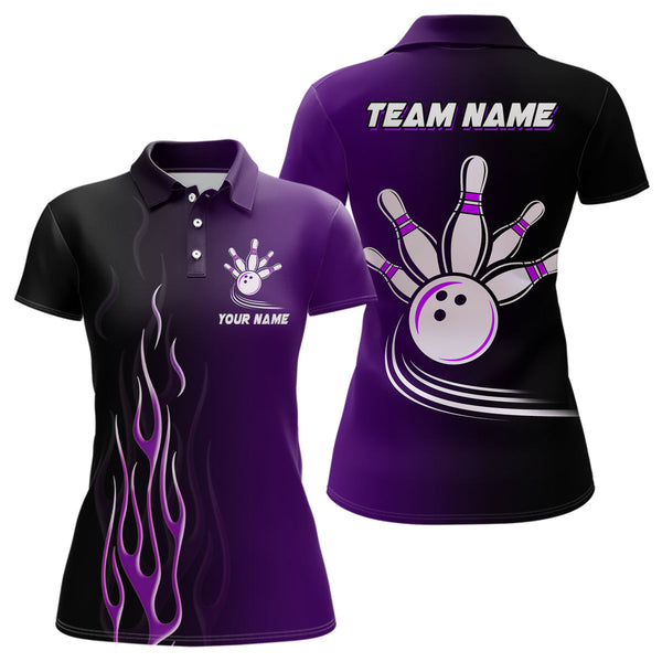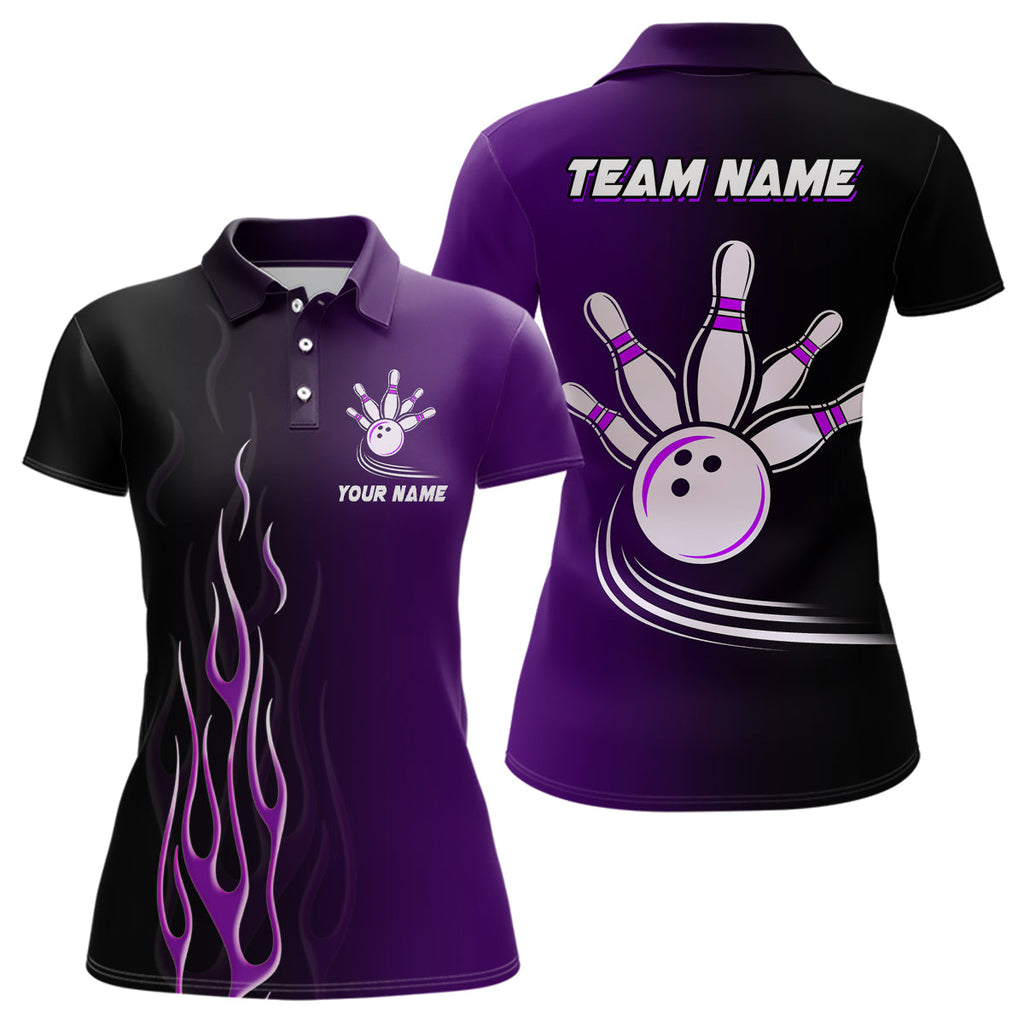 Gradient black purple bowling league jerseys custom Women Bowling Polo Shirts, gifts for bowling team NQS7056