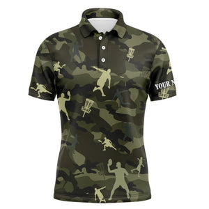 Green camo disc golf Men polo shirts custom name disc golf polo shirts for men, disc golfing gifts NQS4658