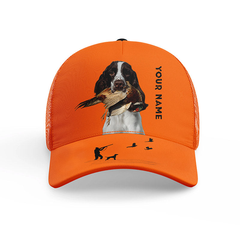 Hunting Dogs Pheasant Hunting Blaze Orange Custom Name Mesh Back Cap, Hunting Cap FSD4524