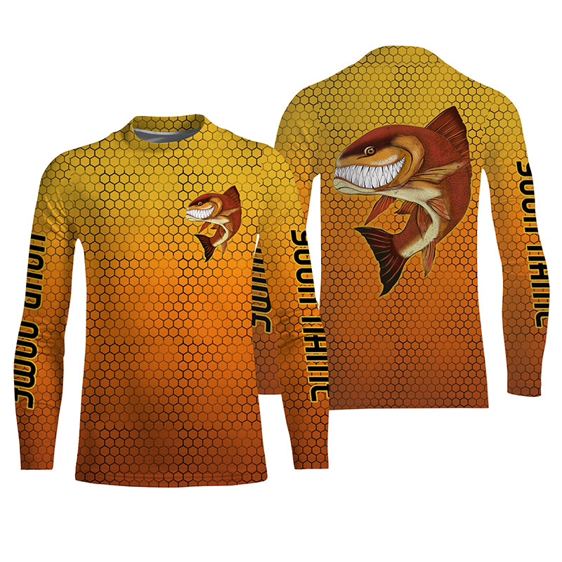 Personalized Angry Redfish Fishing jerseys, Redfish Long sleeve performance Fishing Shirts IPHW3414
