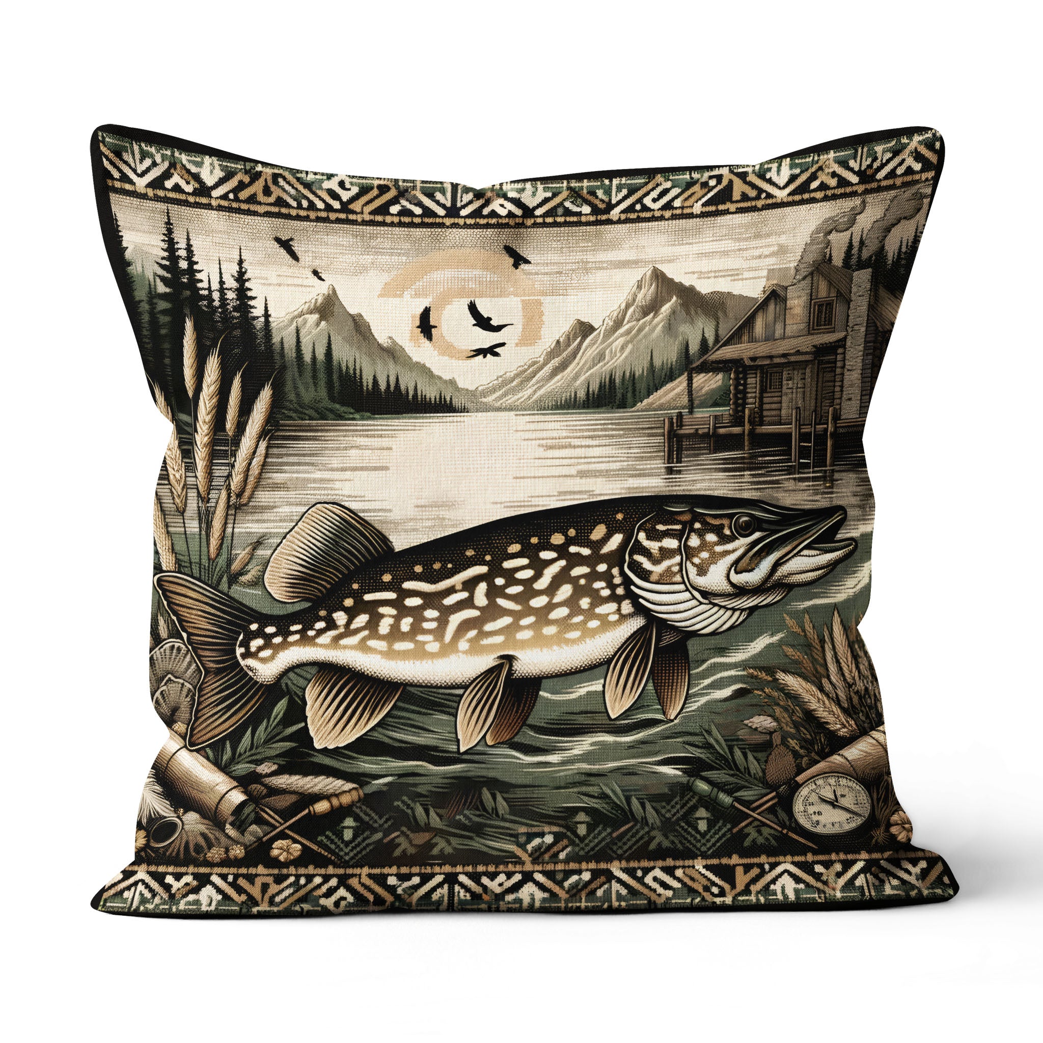 Pike Fishing Lodges Fishing Pillow, Rustic Fishing Cabins decor Fishing Gifts IPHW5697