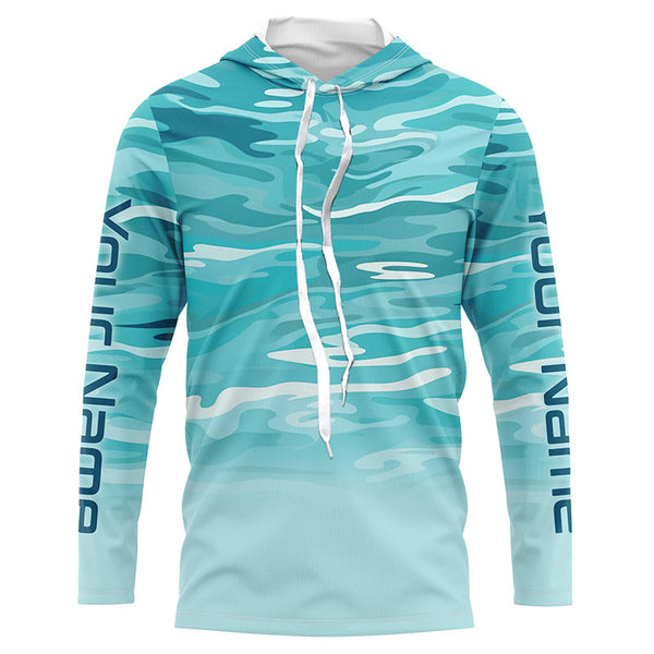 Blue Camo Custom Long Sleeve Tournament Performance Fishing Shirts For Charter Fishing Trip IPHW5796