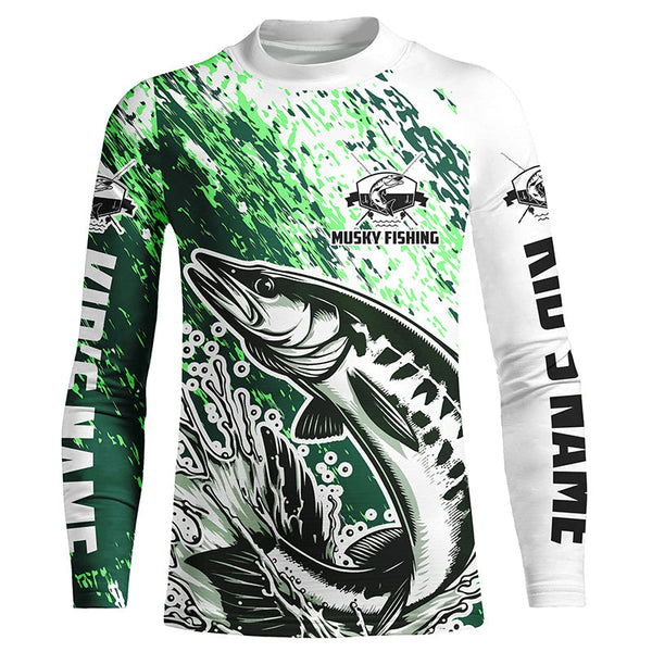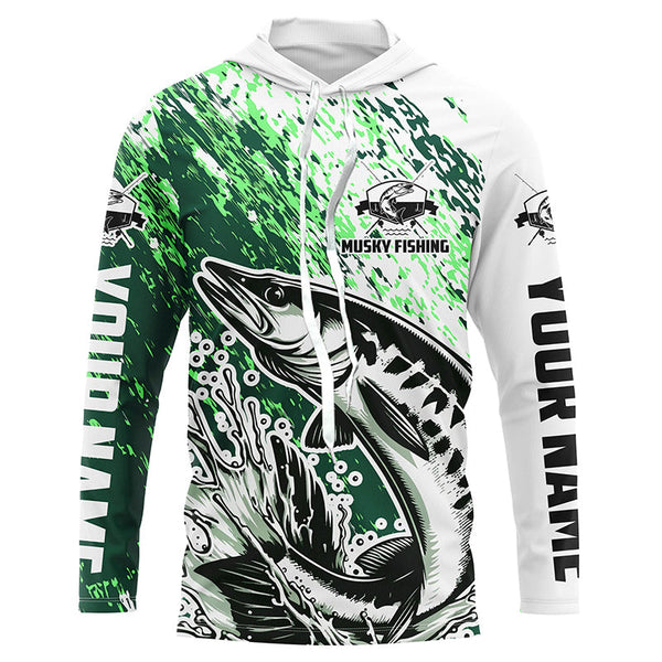 Custom Musky Fishing Jerseys, Muskie Long Sleeve Performamce Fishing Shirts For Adult And Kid |Green IPHW5815