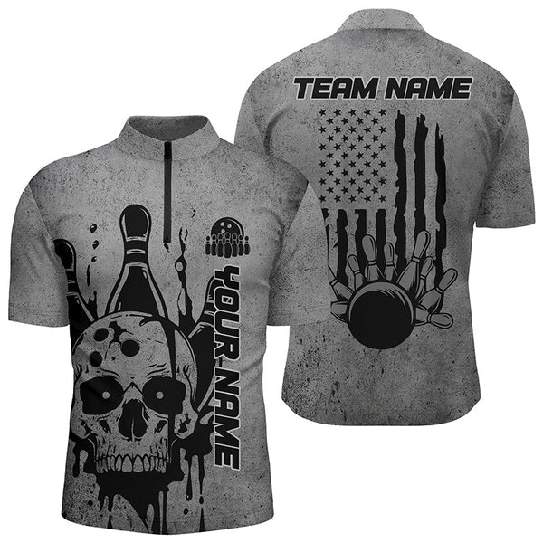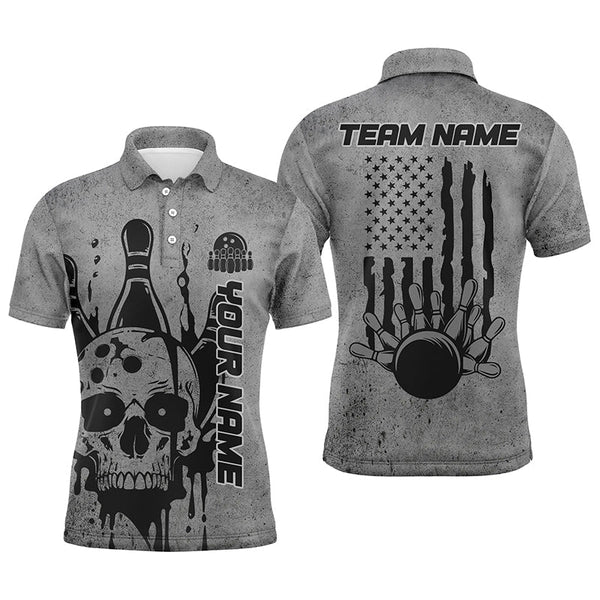 Custom American Flag Skull Bowling Shirts For Men, Patriotic Team Bowling Jerseys IPHW5845