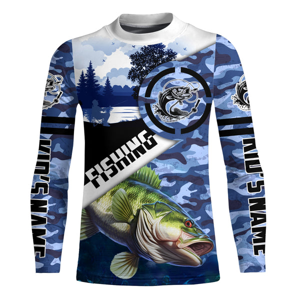 Largemouth Bass fishing blue camouflage fishing clothing Custom performance fishing shirt NQS2616