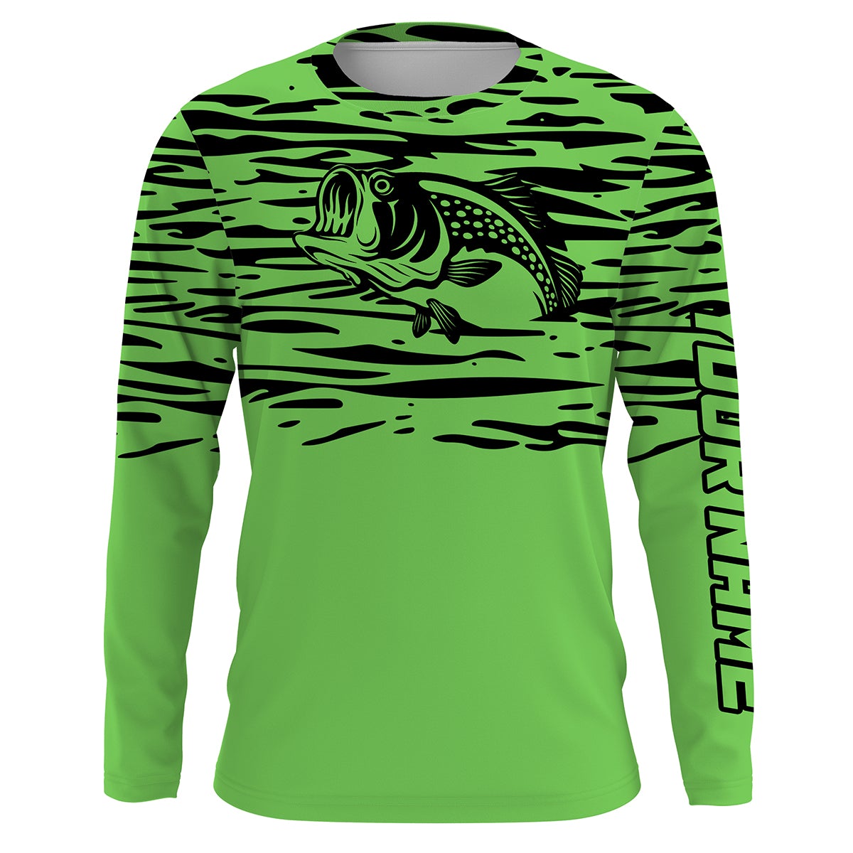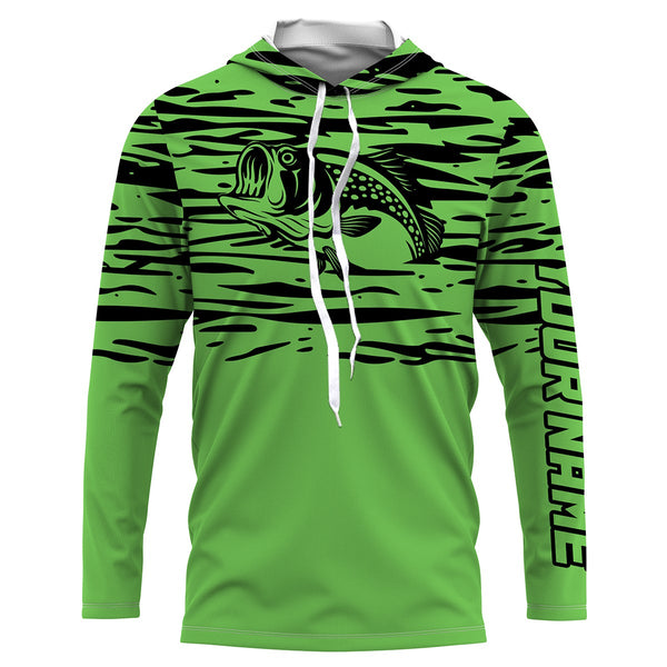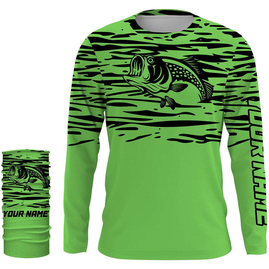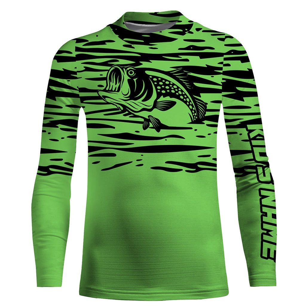 Largemouth bass fishing green color Custom Name All Over Printed UV Protection performance Fishing Shirts For Adult and Kid NQS2876