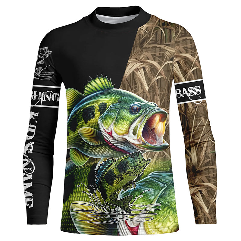 Largemouth Bass fishing Camo UV protection Customize name long sleeves fishing shirts NQS2956