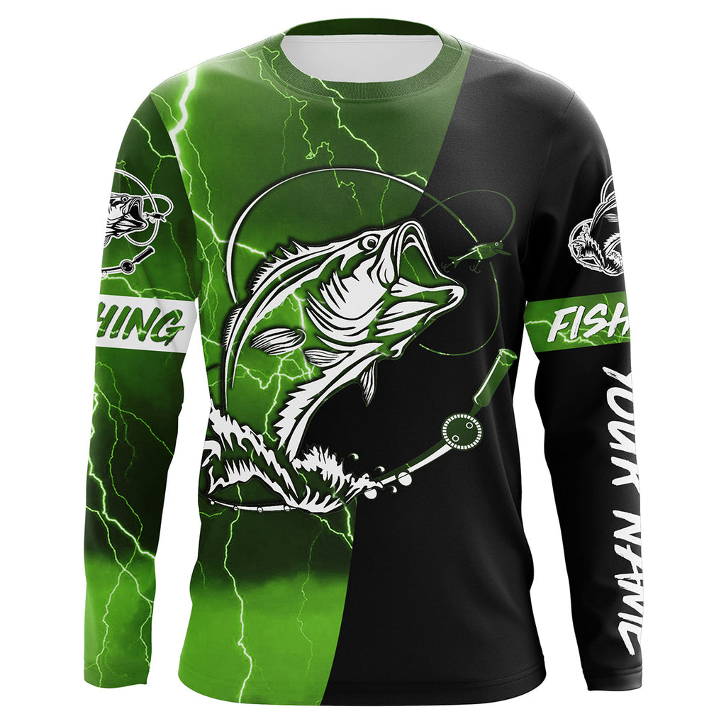 Largemouth Bass Fishing tattoo green camo black Custom name sun protective clothing fishing shirts NQS3302