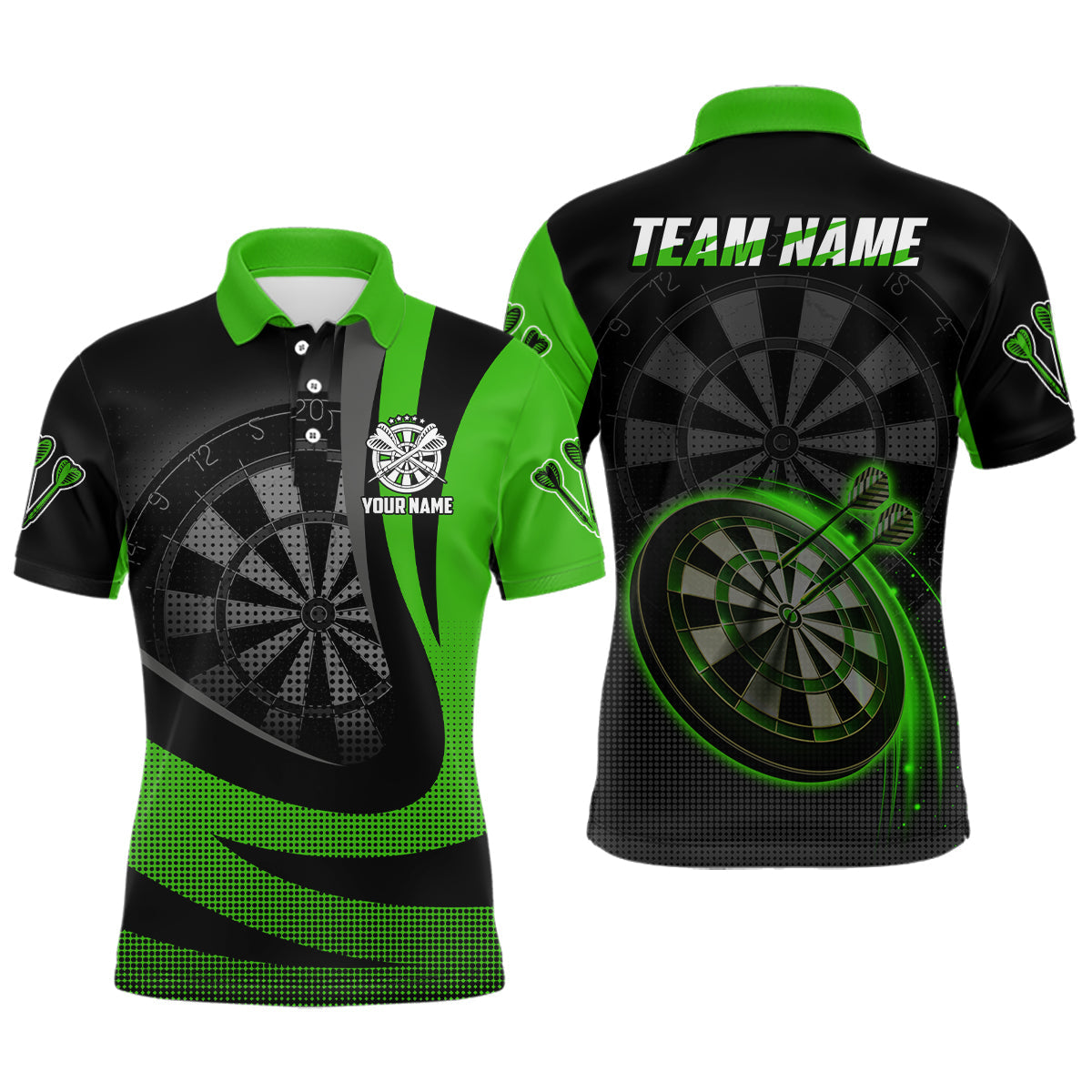 Personalized Black Green 3D Mens Darts Polo Shirt Custom Cool Darts Team Jersey For Men LDT1030