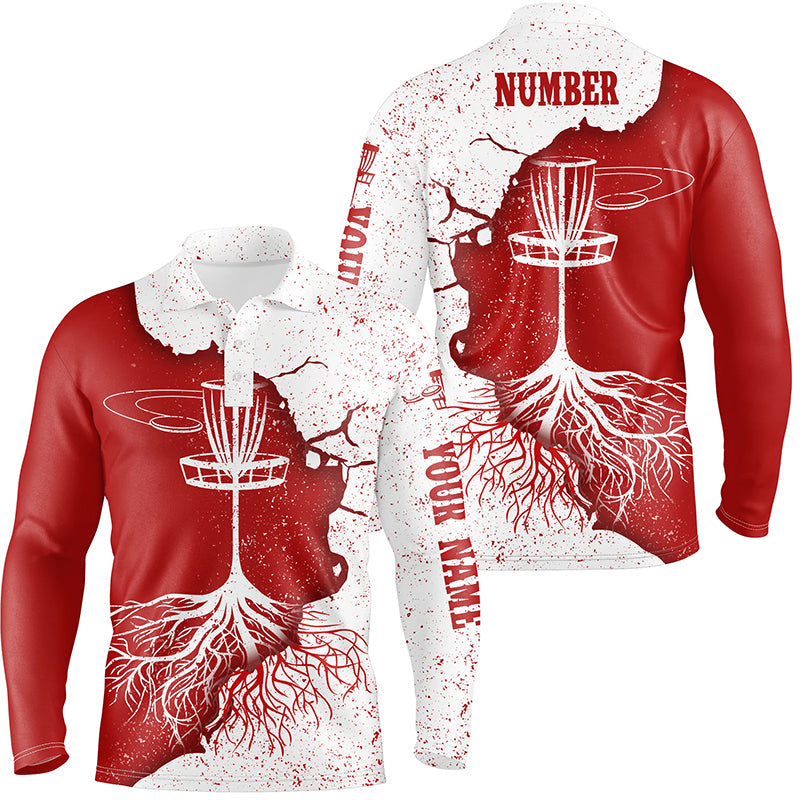 Mens Disc Golf Polo Shirt Red White Grunge Custom Disc Golf Shirts For Men Disc Golf Basket Shirt LDT1032