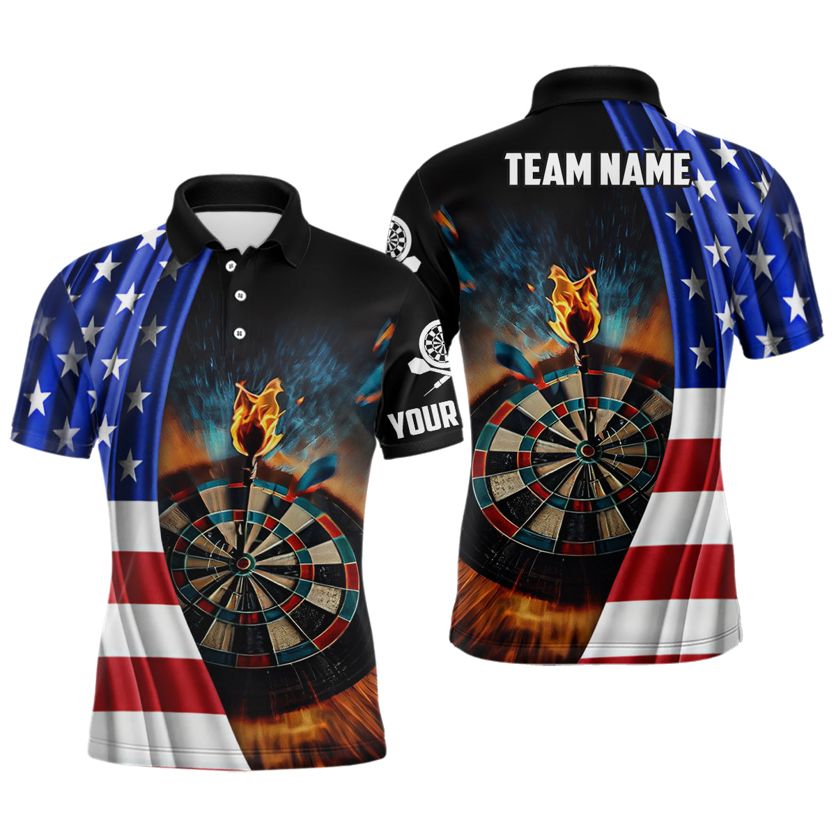 American Flag Mens Darts Polo Shirt Custom Fire Patriotic Darts Shirt For Men Dart Jerseys LDT1054