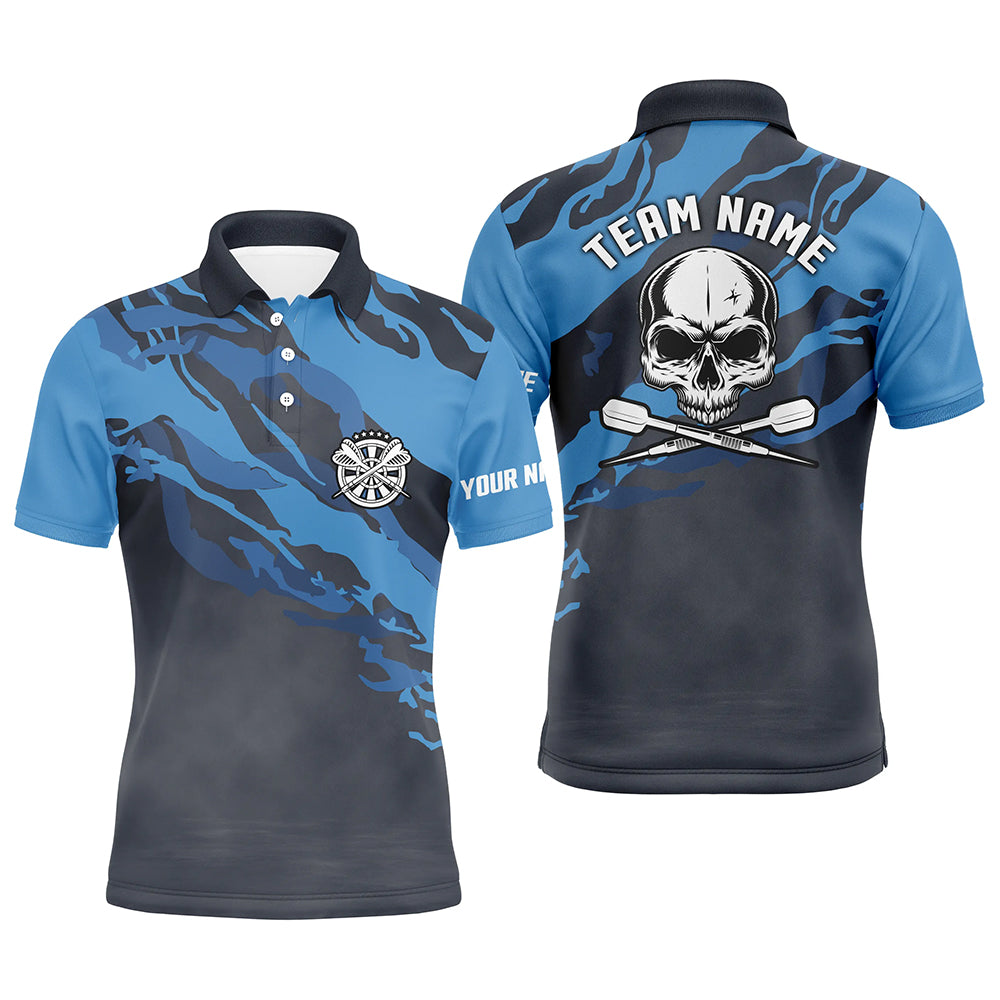 Personalized Blue Skull Darts Mens Polo Shirt Custom Darts Shirt For Men Dart Jerseys LDT1067