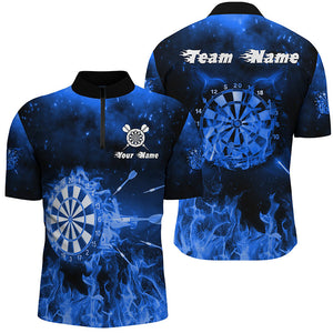 Personalized Mens Darts Quarter Zip Shirt Blue Fire Flame Custom Dart Jerseys For Men LDT1233