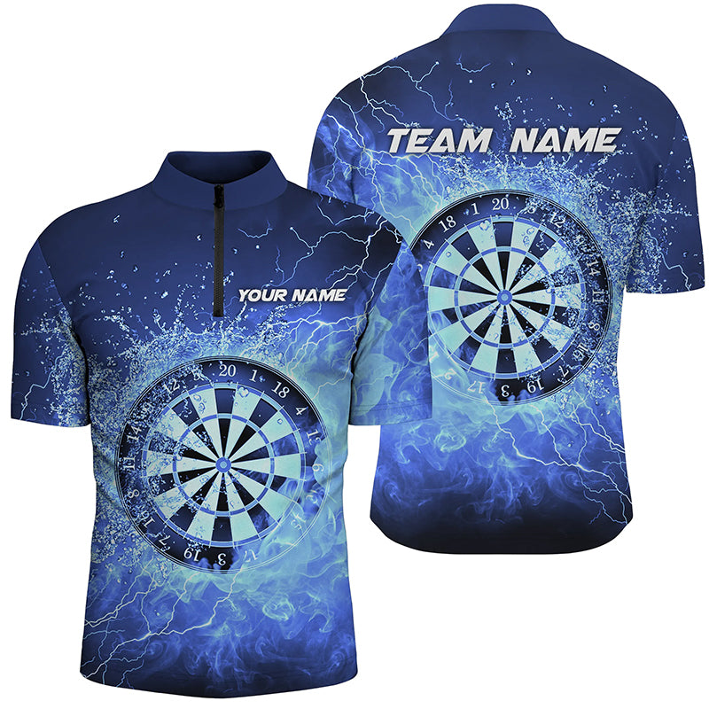 Blue Fire & Water Dartboard Personalized Mens Darts Quarter Zip Shirt Darts Jersey For Men LDT1359