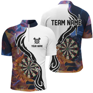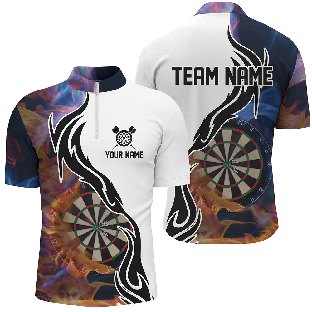 Fire Flame Dartboard Mens Darts Quarter Zip Shirt Custom Darts Shirt For Men Dart Jerseys LDT1363