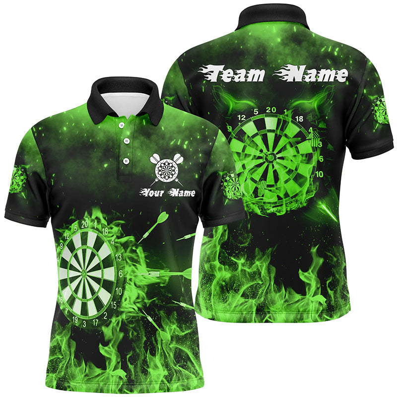 Green Fire Flame Personalized Mens Darts Polo Shirt Custom Darts Shirt For Men Dart Jersey LDT1378