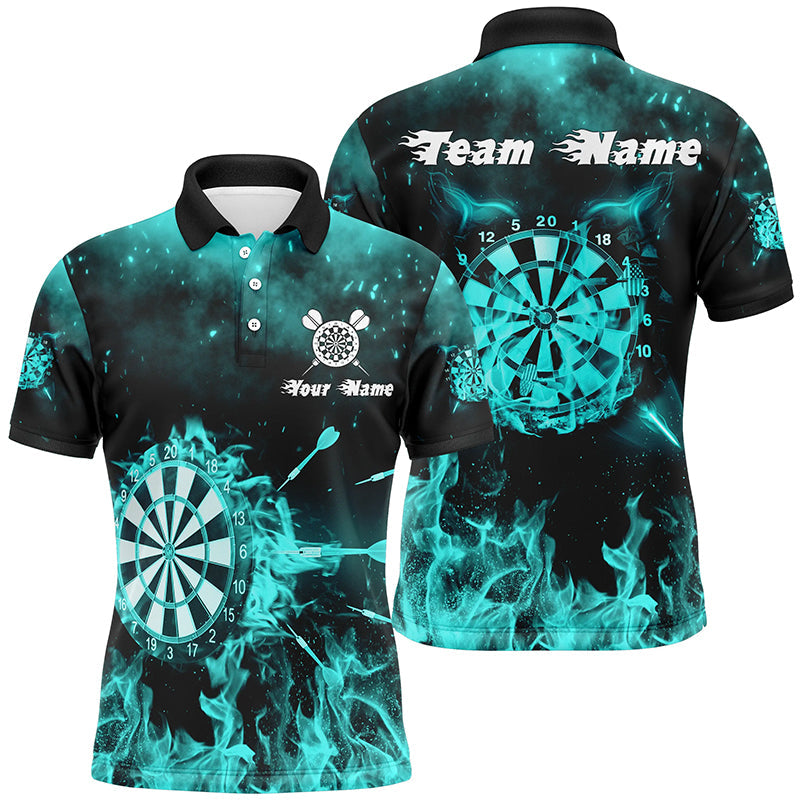 Turquoise Fire Flame Mens Darts Polo Shirts Custom Darts Shirt For Men Dart Jerseys LDT1379