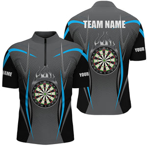 Blue Grey Sports Style Darts Quarter Zip Shirt Custom Darts Shirt For Men Dart Jerseys LDT1382