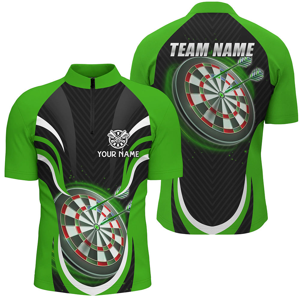 Personalized Black Green Darts Quarter Zip Shirt Custom Darts Shirt For Men Dart Jerseys LDT1393