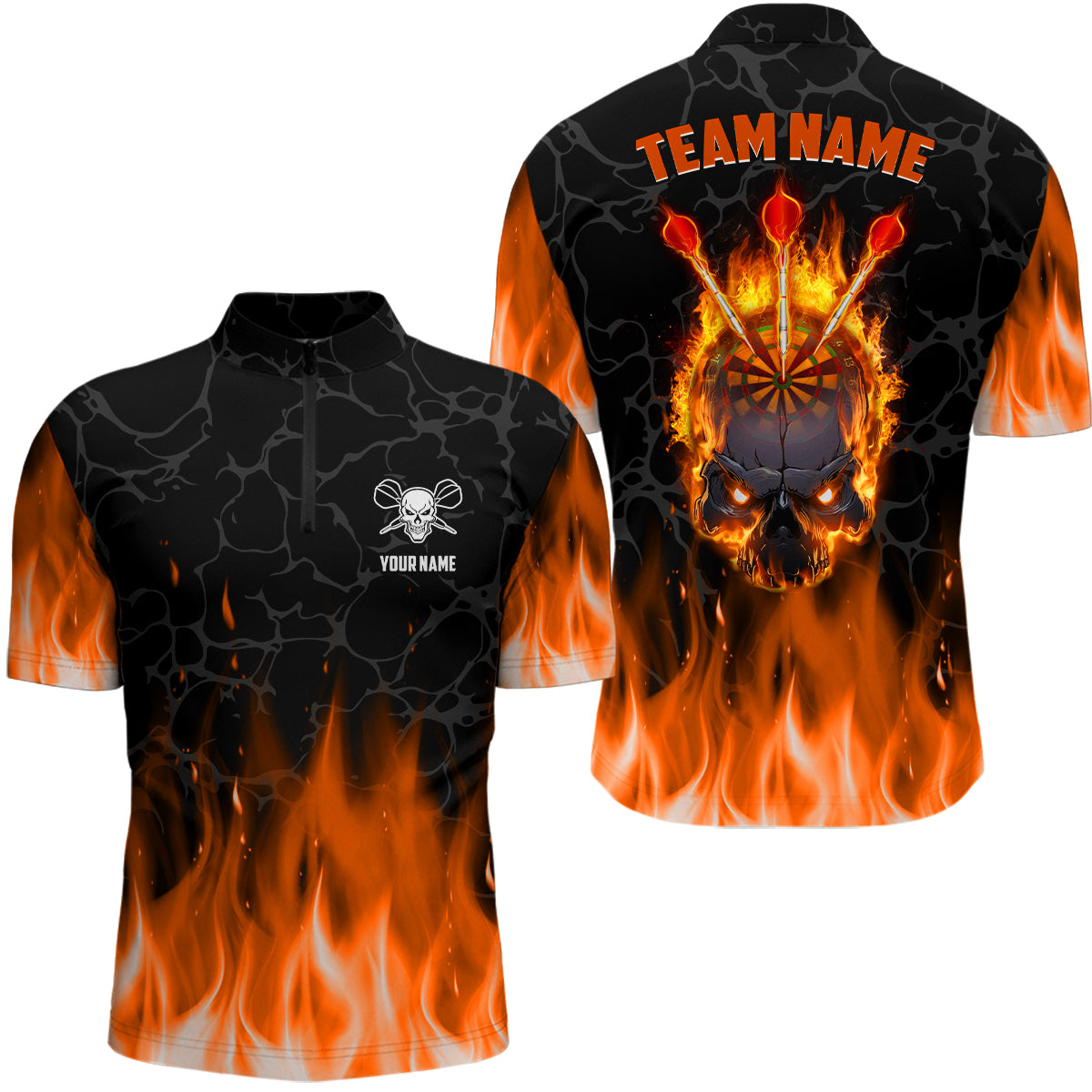 Orange Flame Skull Darts Quarter Zip Shirt Custom Scary Darts Shirt For Men Dart Jerseys LDT1421
