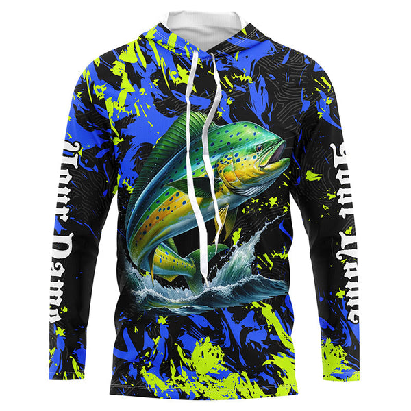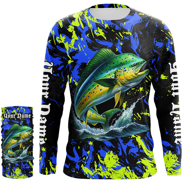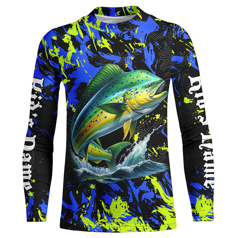 Mahi mahi fishing green blue camo Custom UV protection performance long sleeve fishing shirt jerseys NQS7123
