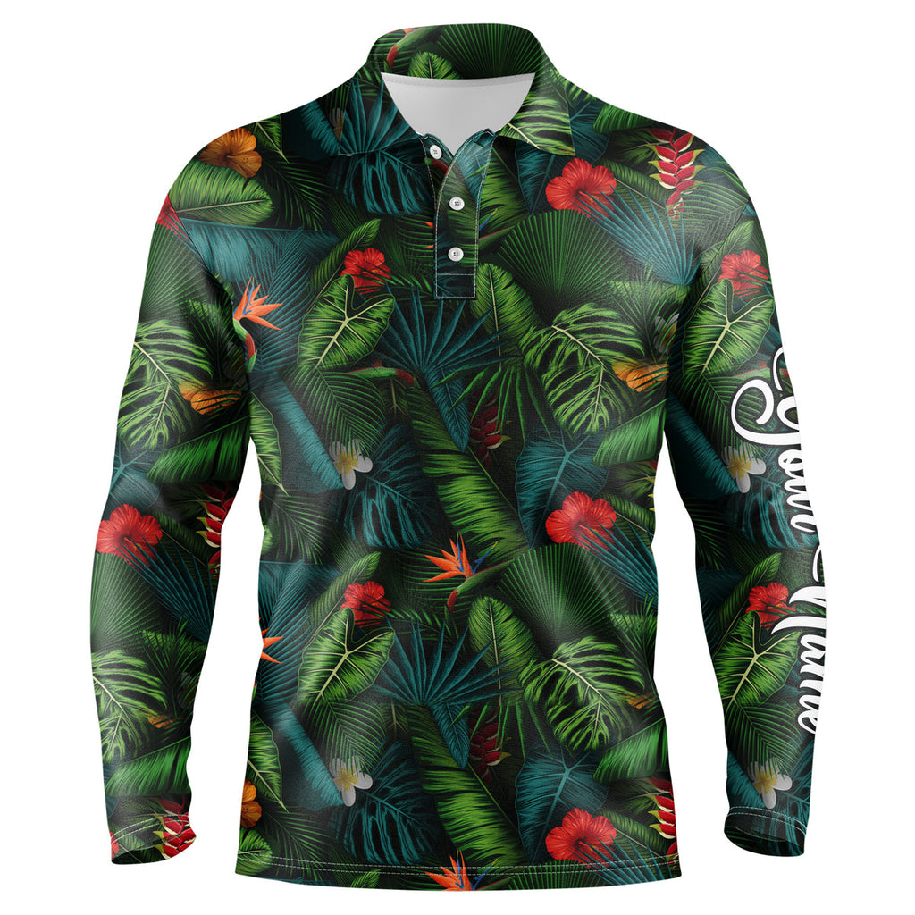 Men golf polo upf shirts with tropical summer leaves background custom team golf polo shirts NQS3714