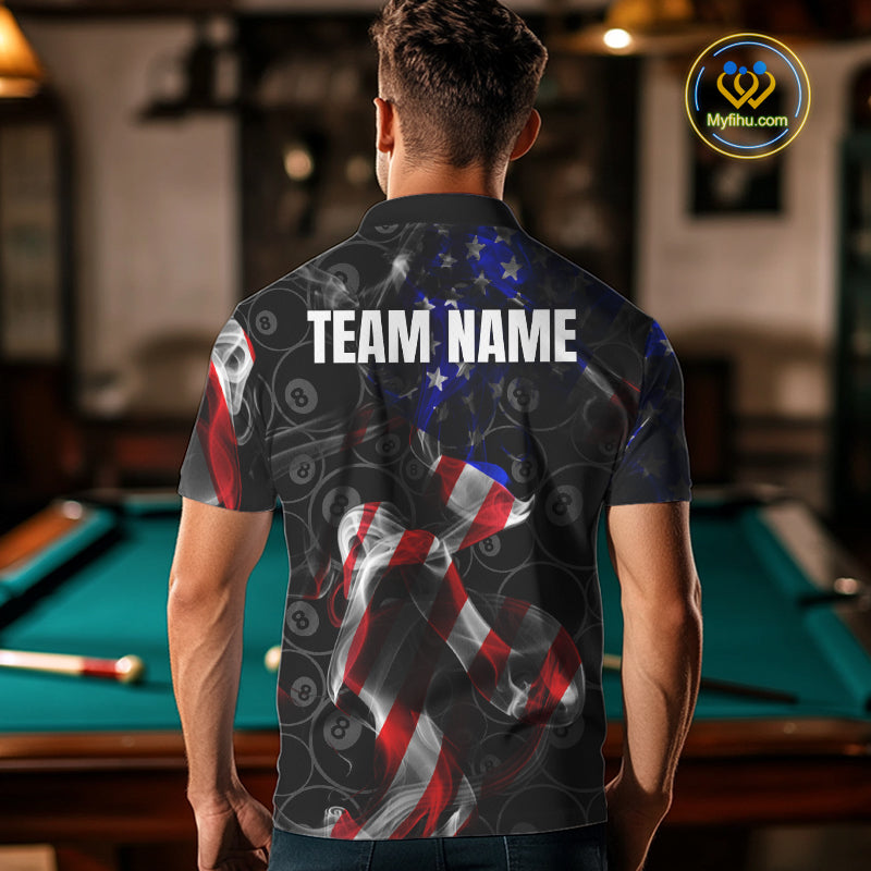 American Flag Smoke 8 Ball Billiard Shirts For Men Custom Patriotic Billiard Pool Team Jerseys TDM4028