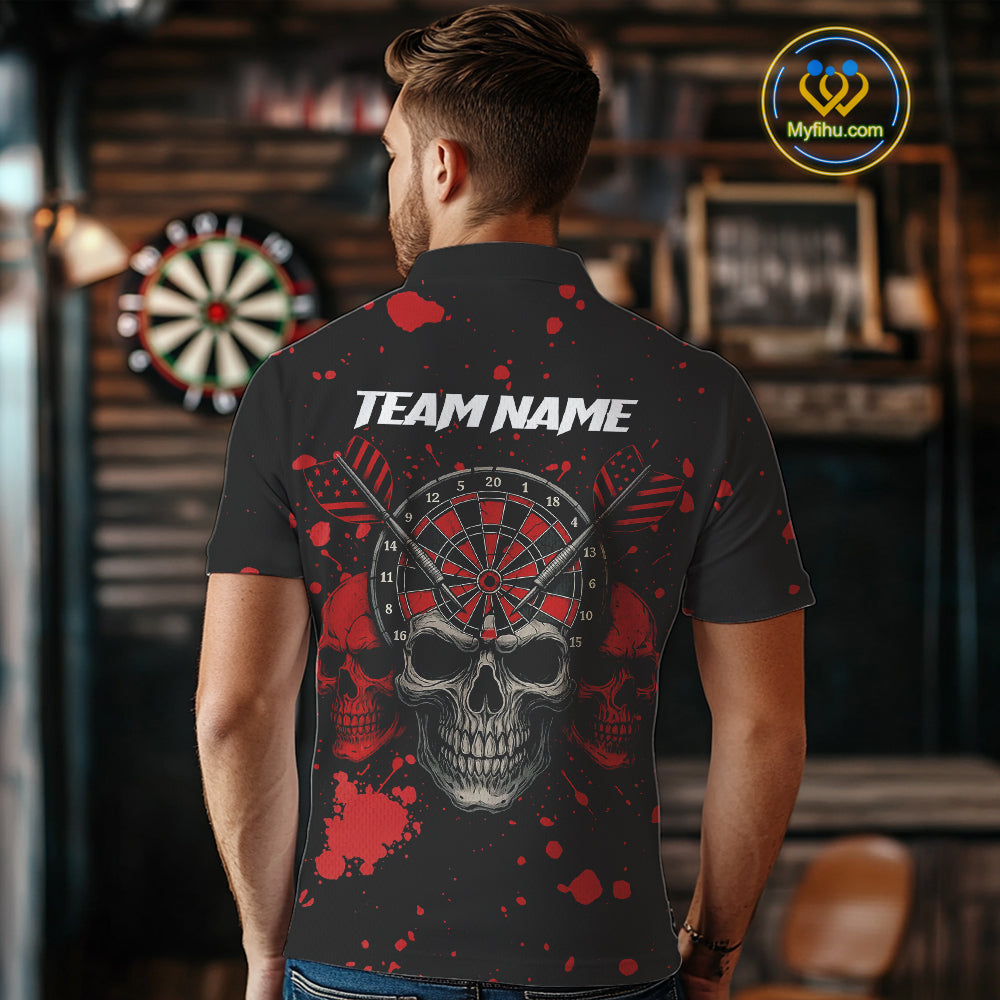 Black And Red Paint Skull Dart Shirts For Men Custom Dart Jerseys, Darts Team Shirt Polo & 1/4 Zip TDM4086
