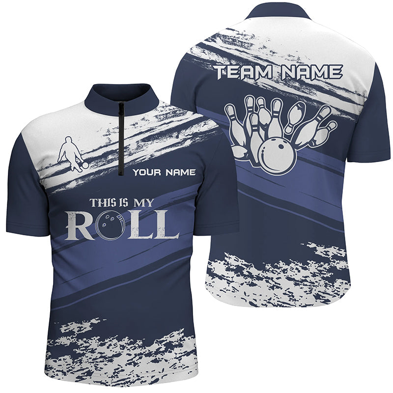 Men's Bowling Shirt Quarter-Zip Custom Name navy and white team Men Bowlers Jersey This is my roll NQS5869