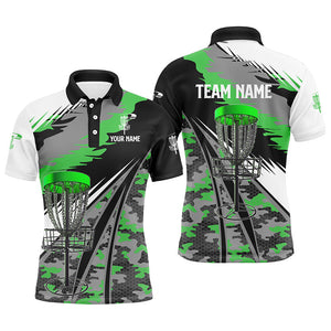 Mens disc golf polo shirts custom green camo disc golf basket disc golf outfit, team disc golf apparel NQS7003