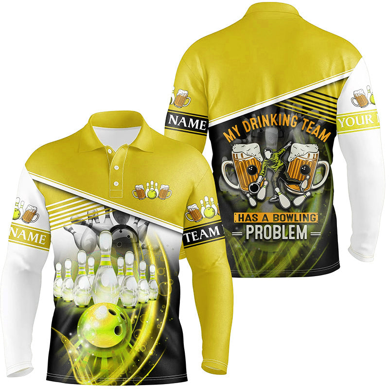 Mens polo bowling shirts Custom My drinking team has a bowling problem team league jerseys | Yellow NQS7015