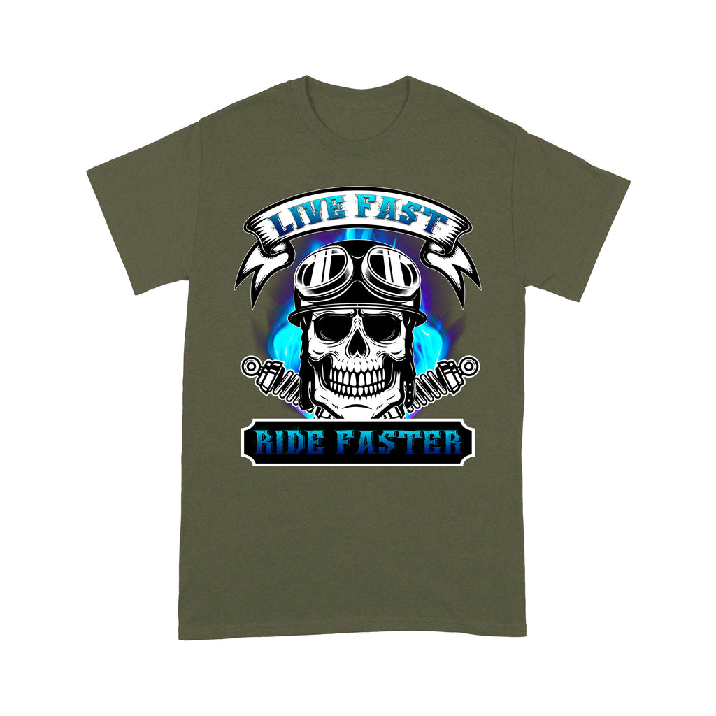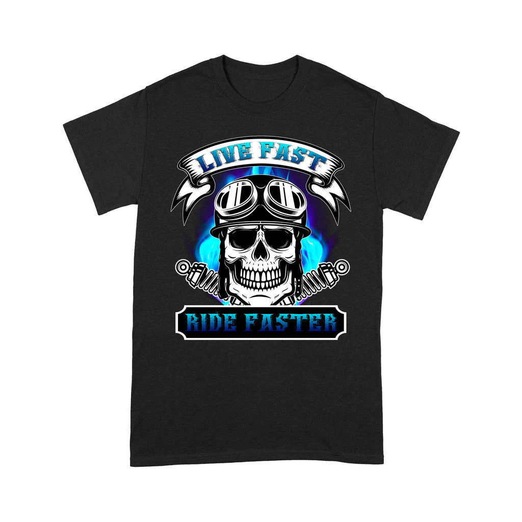 Motocycle Men T-shirt - Live Fast Ride Faster, Cool Skull Riding Tee Motocross Off-road Racing Shirt| NMS128 A01