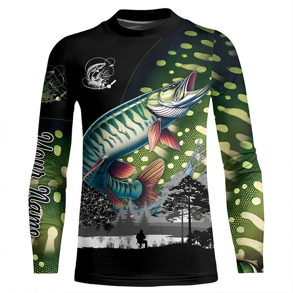 Musky Muskellunge fishing scales Custom name performance anti UV long sleeve fishing shirts jerseys NQS3665